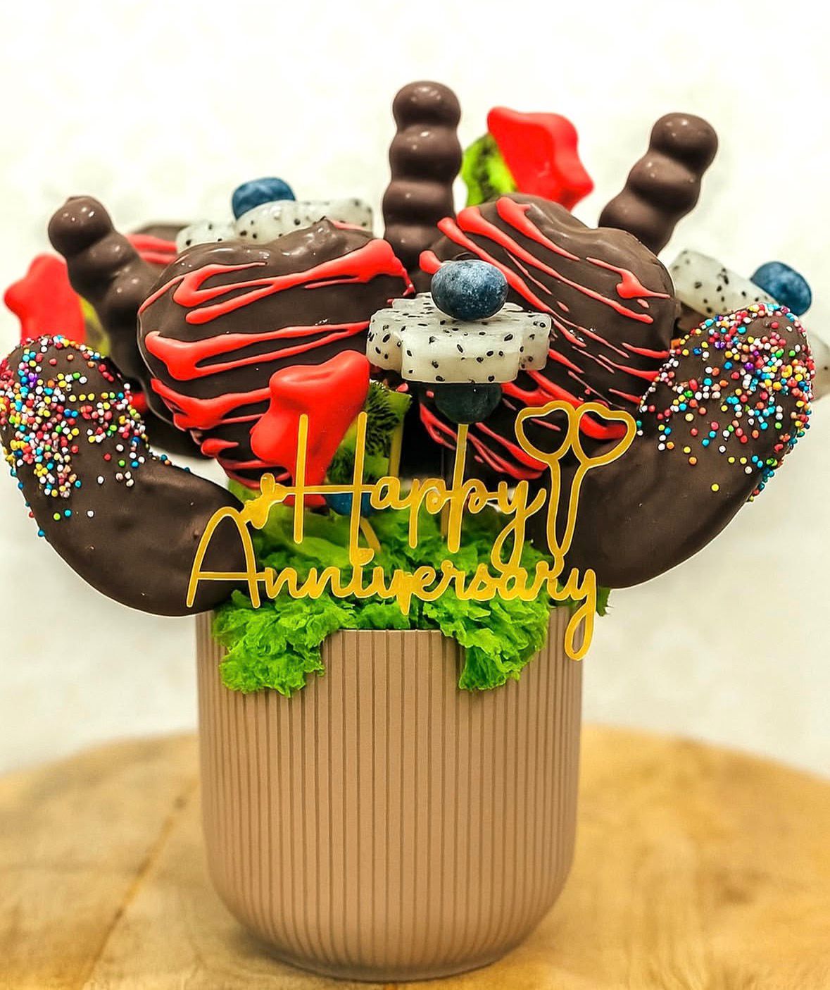 She started dipping fresh, juicy fruits into melted chocolate. The crunch of the fruit with the sweetness of the chocolate was so good that her corporate friends finally had a gift they actually wanted to eat.